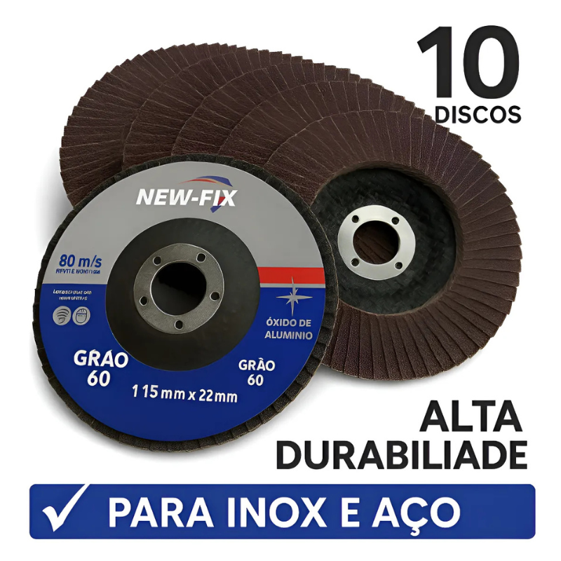 👉 Lixa grossa (grão baixo) com alta resistência.